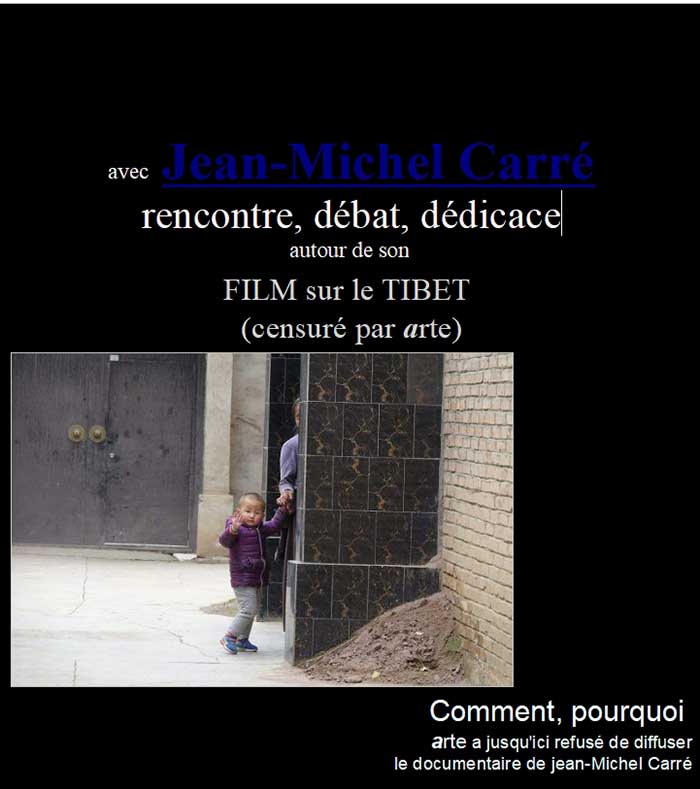 Le réalisateur expérimenté Jean-Michel Carré a réalisé un documentaire intitulé Tibet, un autre regard, fruit de nombreuses enquêtes sur place et de contacts multiples avec des connaisseurs. Mais ce remarquable travail journalistique n’a pas plu à certain(e)s universitaires sinophobes qui l’ont jugé « antiaméricain » et « prochinois » ; cette horde de censeur(e)s malveillant(e)s) a réussi à imposer à Arte la déprogrammation de l’émission à laquelle elle s’était engagée (relire : https://www.legrandsoir.info/arte-une-chaine-enchainee-a-la-sinophobie.html).